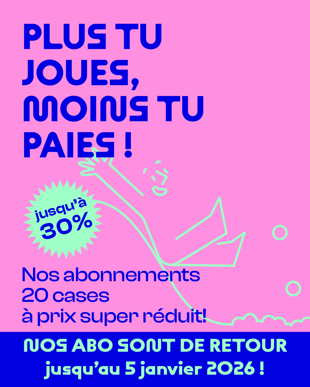 Bienvenue dans notre Jump Arena, l’attraction ultime pour les passionné·e·s de trampoline ! Ici, la plupart des trampolines sont connectés, vous permettant de sauter, rebondir et tournebouler en toute liberté et en toute sécurité. Boosté par le jeu télévisé américain Ninja Warrior, notre parcours Ninja est la nouvelle tendance qui allie sport et loisirs, le tout sécurisé par une épaisse couche de mousse pour amortir vos chutes ! Avec ValoJump, la technologie rencontre le sport pour des jeux adaptés à toutes les classes d’âge et à tous les profils sportifs, garantissant plaisir et amusement. Pour les jumpers expérimenté·e·s, notre parc propose également des trampolines Haute Performance, conçus pour vous faire sauter encore plus haut et rester plus longtemps en l’air. Préparez-vous à vivre une expérience extrême qui vous donnera un vrai coup d’adrénaline !